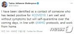 WHO 사무총장 “확진자와 밀접접촉, 자가격리”