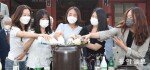 26일 경기 수원시 화성행궁 내 유여택(정조 행차 시 머무르며 신하를 접견하던 곳)에서 ‘막걸리 빚기’가 국가무형문화재로 지정된 것을 기념하는 행사가 열렸다. 참석자들이 전국 각지의 막걸리를 한곳에 따르는 합주식을 진행하고 있다.by 수원 화성행궁서 팔도 막걸리 합주식