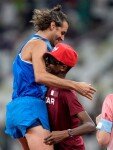 “공동 금메달도 가능한가요?” 카타르 남자 높이뛰기 대표 무타즈 바르심(30)은 1일 일본 도쿄 올림픽스타디움에서 열린 2020 도쿄 올림픽 육상 남자 높이뛰기 결선 도중 심판진에게 다가가 이렇게 물었다. 심판진은 “상대 선수도 동의한다면 가능하다”고 말했다. ‘상대 선수’이자 ‘절친’이었던 잔마르코 탐베리(29·이탈리아)의 대답도 물론 OK였다. 그렇게 올림픽 높이뛰기 역사상 첫 번째 공동 금메달이 나왔다. 두 선수는 이날 2m37을 1차 시기에 넘은 뒤 2m39에 도전했지만 3차 시기까지 모두 실패했다. 두 선수는 이날 2m24부터 2m35까지 전부 1차 시기에 성공했기에 모든 기록이 똑같은 상황. 국제육상경기연맹(WA)은 이럴 때 ‘승부뛰기’를 통해 순위를 가리도록 하고 있다. 높이를 조금씩 높여가면서 끝까지 살아남는 선수에게 높은 순위를 주는 방식이다. 단, WA 규정 26.8.4는 ‘참가 선수 전원이 승부뛰기 참가를 거부하면 공동 순위를 인정할 수 있다’고 예외를 두고 있다by