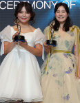 박민지(오른쪽)가 30일 서울 강남구 그랜드인터컨티넨탈 서울 파르나스에서 열린 ‘2021 한국여자프로골프협회(KLPGA) 대상’ 시상식에서 대상을 수상했다. 송가은(왼쪽)이 신인상 트로피를 든 채 미소 짓고 있다. 박민지는 이날 대상은 물론 다승왕(6승), 상금왕(약 15억2137만 원), 국내 특별상까지 4관왕을 차지했다. by