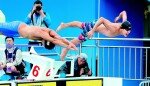 22일 항저우 아시안게임 근대5종 남자 개인 준결선에 출전한 전웅태(오른쪽)가 세부 종목인 수영 경기 때 힘차게 물로 뛰어들고 있다. 24일 열리는 결선에 진출한 전웅태는 한국 선수단에 대회 첫 금메달을 안길 것으로 예상되는 선수 중 한 명이다. 23일 공식 개막하는 항저우 아시안게임은 다음 달 8일까지 16일 동안의 열전을 이어간다.